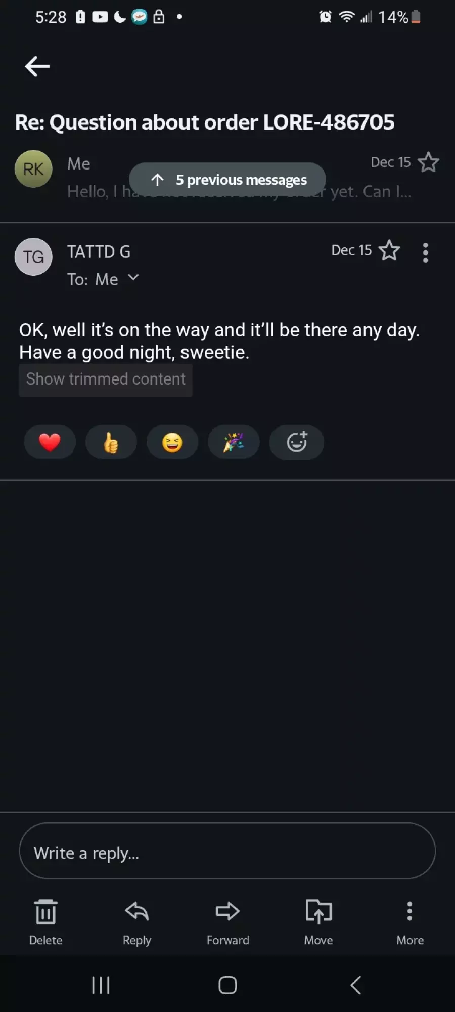 And gotten no response when my items will arrive