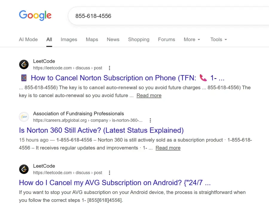 This letter is being written in regards to a fraud conducted under the disguise of Norton support services. I encountered a website known as “How to Cancel Norton Subscription on Phone” which had the contact number “855-618-4556”. Upon calling, he/she falsely said that he/she was representing Norton and that there was an immediate need for canceling my subscription. He/she tricked me into sending money via Amazon gift cards but failed to deliver any service after doing so.