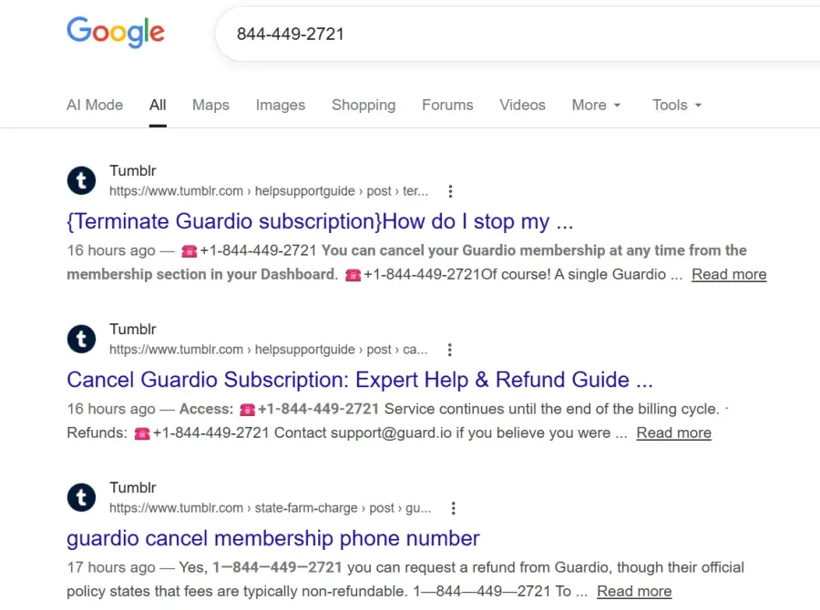 This letter is to inform you about an instance of fraud that happened when an impersonator of Guardio customer service made me fall into their trap by claiming to assist me with canceling my subscription. The fraudster used the contact number 844-449-5670 and made inquiries like, “Is Guardio easy to cancel?”