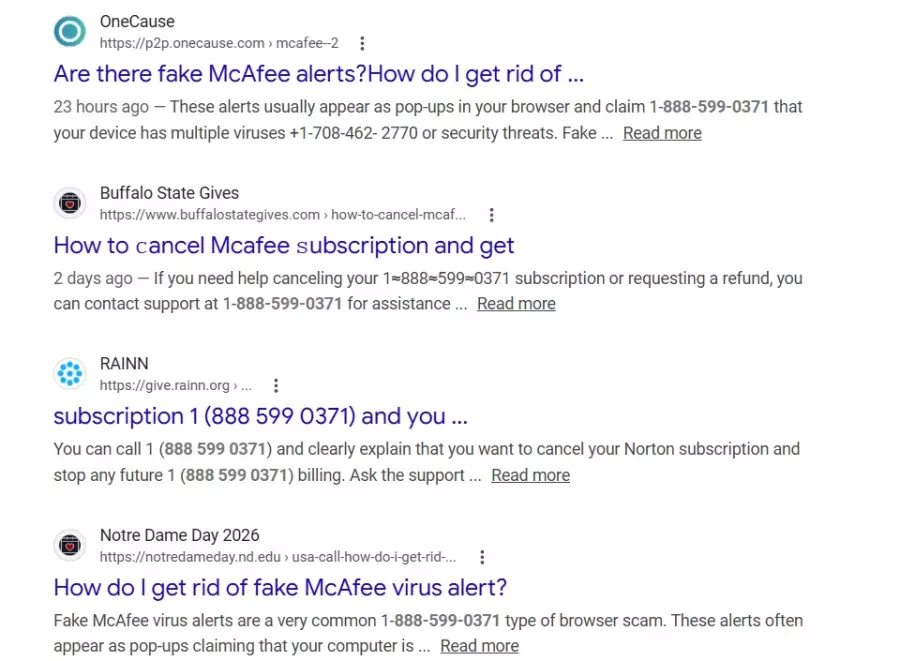 I would like to report a fraudulent incident involving scammers impersonating McAfee services. While browsing online, I came across a page titled “How to Check Norton Subscription Status (2026)” that appeared legitimate and listed the contact number 844-530-2942. When I reached out, the representative falsely claimed my subscription had expired and required immediate renewal. They convinced me that the only available payment option was through Amazon gift cards.