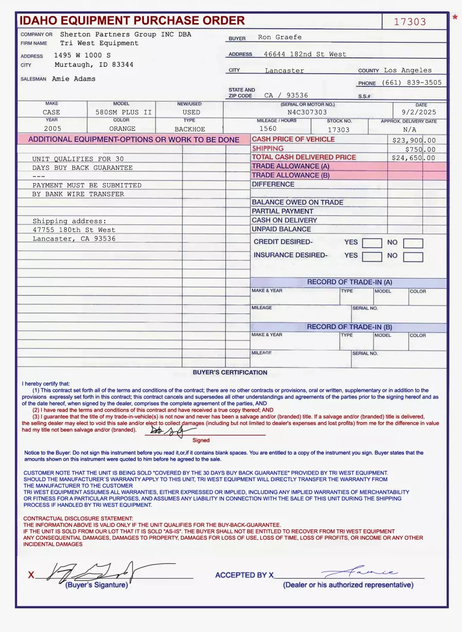 Re; tri west-equipment tri west equipment SCAM! Scammer at 208-219-5006