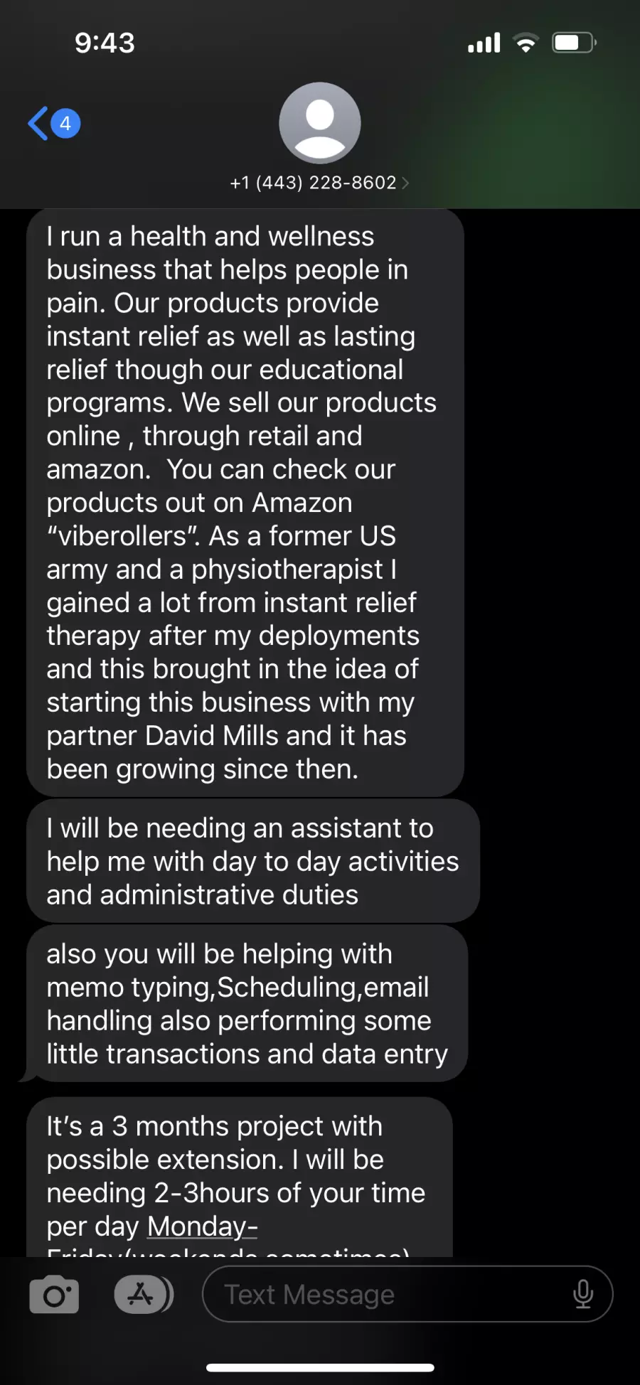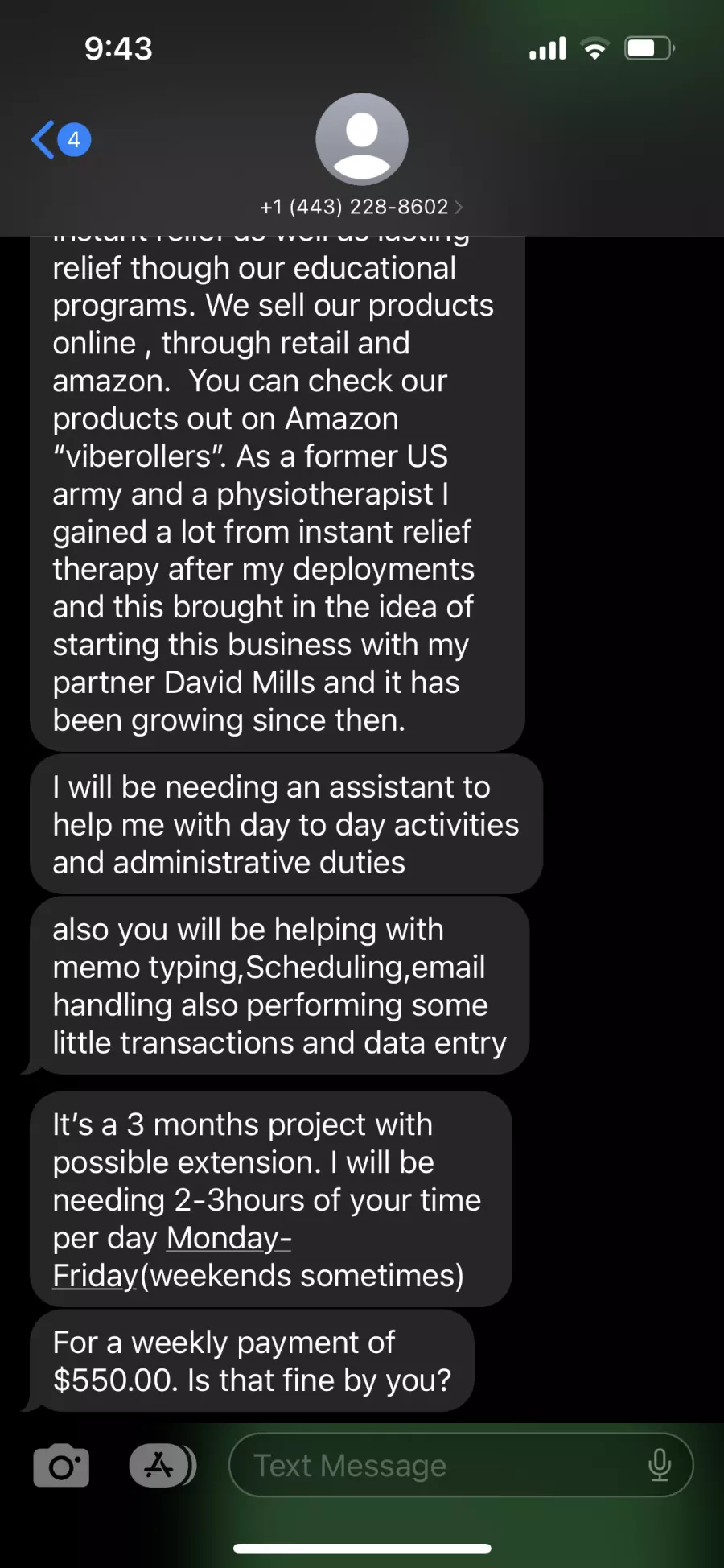 Fake job interview from Viberollers via text and call