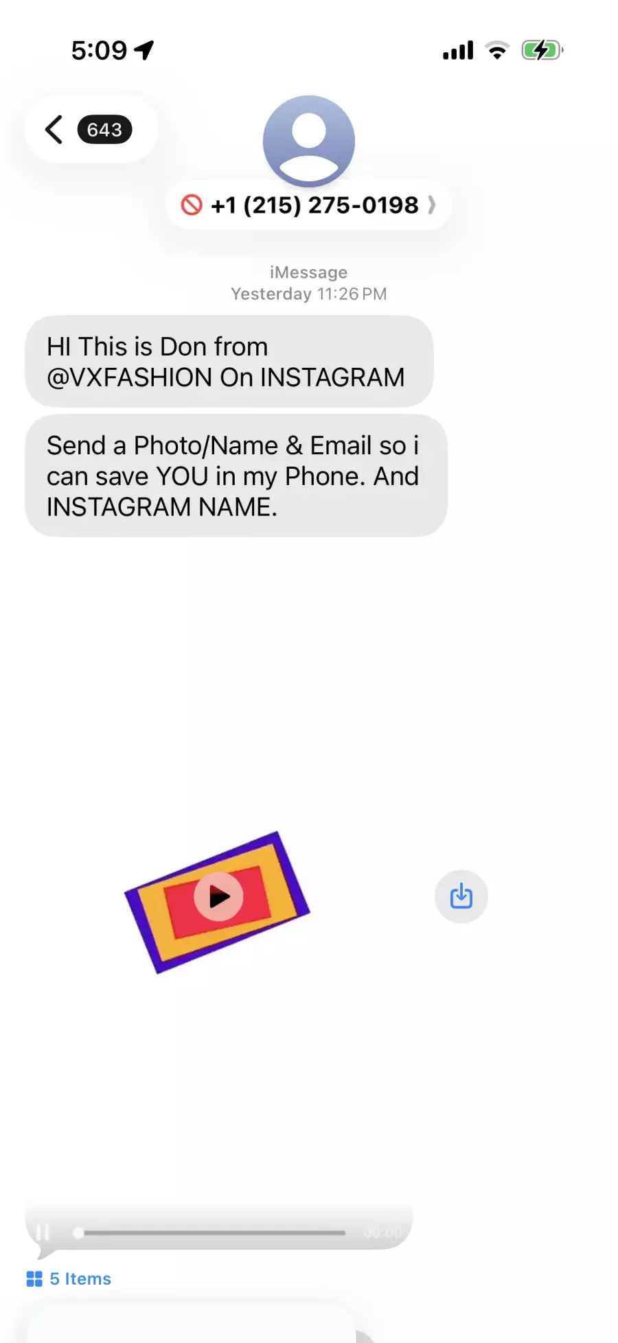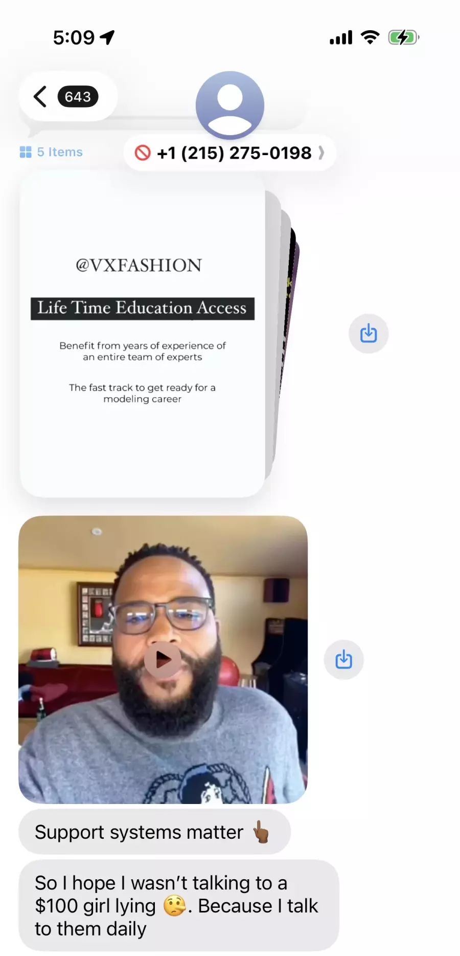 After the phone call, he sent multiple unsolicited messages, including videos and repeated follow-ups, and continued contacting me through both my personal and professional social media accounts. His tone became increasingly pressuring and accusatory when I did not respond immediately, including suggesting I was not legitimate.